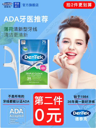 【FDA认证、可刮舌苔:75支x2件 美国进口 德泰克 薄荷味圆线超细牙线棒 19.9元包邮】