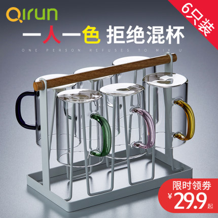【启润 高硼硅 带把玻璃杯 330ml*4 微波炉电陶炉适用 19.9元包邮】