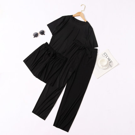 【宝娜斯 冰丝无痕居家睡衣三件套( T恤+短裤+长裤) 4色39.9元包邮】
