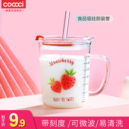 【自带刻度,好把控】可爱少女带盖吸管高颜值玻璃杯,加厚耐热大容量早餐刻度杯,创意涂鸦,刻度量化,耐热耐用,用来喝咖啡、果汁、牛奶都很不错哦!【赠运费险】