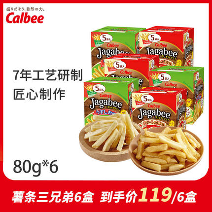 久违好价,不要说贵,贵有贵的道理,爱吃薯条的吃货,怎么能错过据说是最好吃的三兄弟薯条呢?规格三兄弟淡盐/酱油味薯条80g*6盒装,每盒5小袋,目前商家Calbee官方旗舰店售价¥119,可叠加¥30优惠券,实付¥89包邮到手。同款其他渠道普遍售价¥29+/盒。