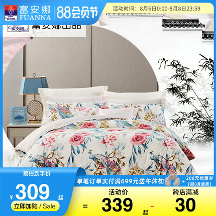 天猫富安娜官方旗舰店339元,可领100元优惠券,实付239元到手,1.2m此价。富安娜家纺,中国家纺十大品牌之一,线下门店众多,品质放心。此款床上四件套,斜纹编织纯棉材质,面料表面浮点少,触感软糯细腻,亲肤舒适。饱满大气的花卉团图案,色彩鲜艳,风格优美。