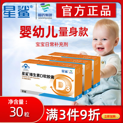 【星鲨 维生素D软胶囊 30粒 促进钙吸收 孩子成长必备 28元包邮 线下药店40元/盒】