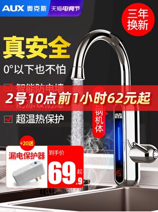 【晒tu奖10圆,到手价59.9元】奥克斯专注20年,3秒速热,带数显,出水温度一目了然!水电分离,使用安全更放心,冷热两用随心控制,更有漏保测漏,为您省水,省电,省时!【七天无理由退换】