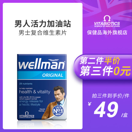 【英国最大保健品牌之一:30片 Vitabiotics维百莱 男性综合维生素片 39元包邮(京东169元)】