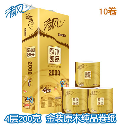 清风原木金装卷纸,四层加厚紧实,湿水强韧不易破,拭擦不易掉屑,干湿两用,温和呵护你的娇嫩肌肤!不含可迁移性荧光剂,母婴放心用~