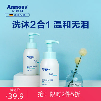 【安慕斯 婴儿洗发沐浴露二合一 300ml*2瓶29.9元包邮(拍2件)】