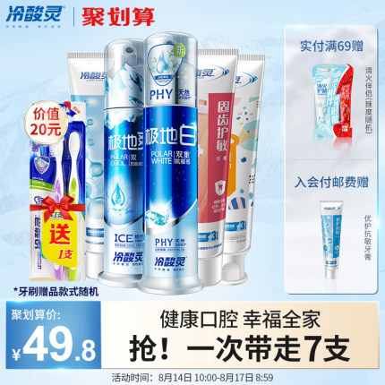 冷酸灵 极地白茶清新牙膏套装 ,新潮奢华外观,定量节省设计,细腻丰富泡沫,优雅甜美口感,还原美食本味~ 天猫冷酸灵旗舰店领券拍下29.8元包邮