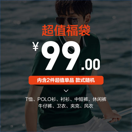 太平鸟 男装福袋 2件装,太平鸟男装福袋,内含2件超值单品,T恤/polo衫/衬衫/中短裤/休闲裤/牛仔裤/卫衣/夹克/风衣等。尺码自选,款式随机。
