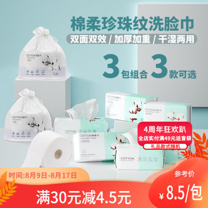 【MINISO 名创优品 棉柔珍珠纹AB双面洗脸巾 100片*3包 第2项,立减+券后22.5元包邮 单件7元】