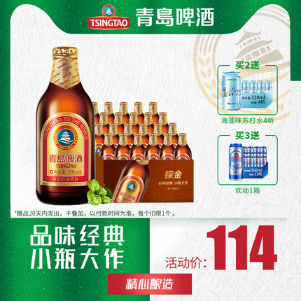 青岛啤酒金质小棕金,是由青岛啤酒股份有限公司生产的,以优质麦芽、大米、啤酒花为原料酿制而成,青岛啤酒官方旗舰店114元,可领15元优惠券,实付99元到手,是296ml*24听