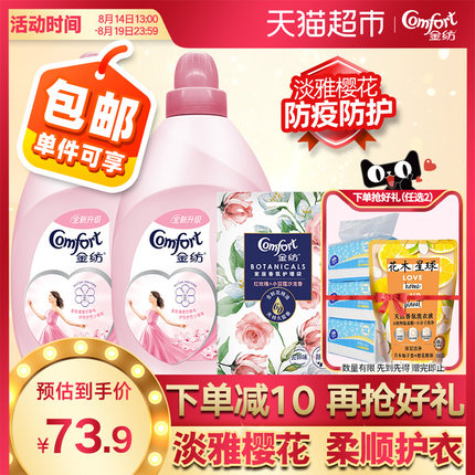 【金纺 衣物柔顺剂樱花香氛2.5L*2+除湿去霉香氛袋20g 48.9元包邮 历史低价】