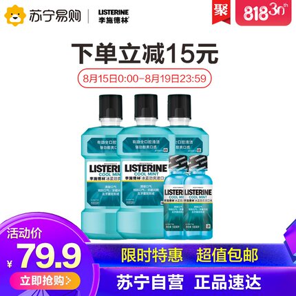 苏宁易购官方旗舰店79.9元,下单立减15元,可领5元优惠券,实付59.9元到手,规格为500ml*3瓶+100ml*2瓶。这款李施德林 冰蓝口味 漱口水,适用于早晚刷牙后,或者需要清洁口腔时使用;每次20ml,持续漱口30秒吐出即可;不要用水稀释,使用后,无需再用水漱口。