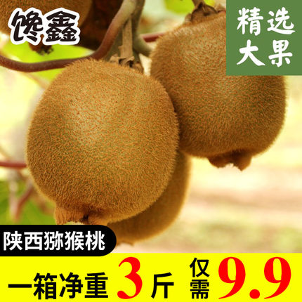 【现摘新鲜陕西绿心猕猴桃带箱3斤 券后9.9元起包邮】