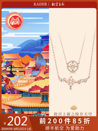 原创设计,符合中式美学,适合七夕送礼。卡蒂罗X故宫联名 国风 绮井天穹项链,天猫卡蒂罗旗舰店售价238元,点此领取30元优惠券,实付208元包邮,送联名礼盒,送礼更方便。灵感源于故宫宫殿的藻井,华美绮丽,层叠缕刻的对称之美,符合东方美学,优质合成立方氧化锆点缀,造就星空感,16小时手工抛光打磨,SGS七层环保纳米喷镀,久戴不脱色。