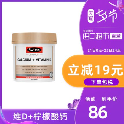 【澳洲 预防疏松 150粒/瓶 swisse 钙+VD 柠檬酸钙片 券后71元包邮】