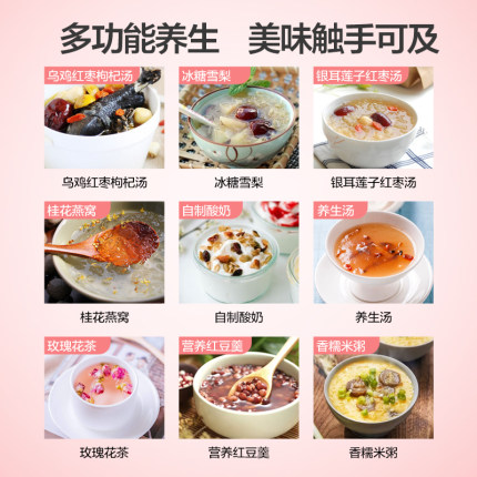 炖煮双全精致养生,多段智能控温预约定时,180s提壶记忆,12种养生菜单,随意切换各种暖心饮茶,1.5L容量私样欢心,共享怡人!