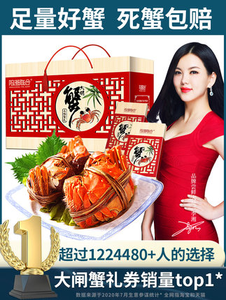 【阳澄联合 大闸蟹提货卡礼券 公蟹3.5两 母蟹2.5两各4只128元包邮】