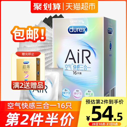 【杜蕾斯 AiR空气快感三合一避孕套 比冈本003更薄更润 16只 99元包邮 拍2件153元 保密发货】
