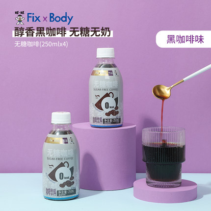 【旺旺 Fix Body 无糖黑咖啡饮料250mL*4瓶装9.9元包邮(第二件同价)】