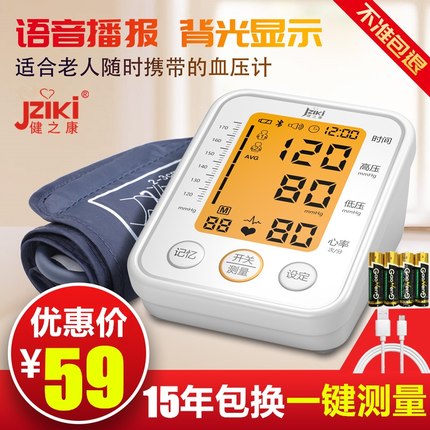 健之康 智能语音电子血压计,一键操作超简单,智能自动加压,语音播报,爸妈看的更清楚! 天猫有商家领券拍下39元包邮