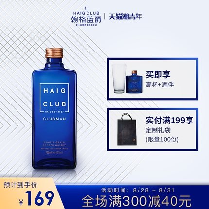 【贝克汉姆推荐:Haig Club 翰格雅爵 单一谷物威士忌 700ml 140元包邮(之前推荐169元)】