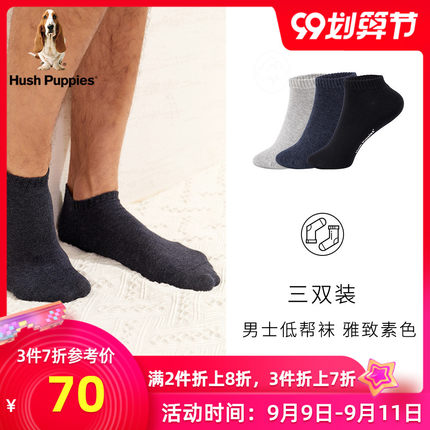 【Hush Puppies 暇步士 男士纯色短袜3色三双装 19元包邮】