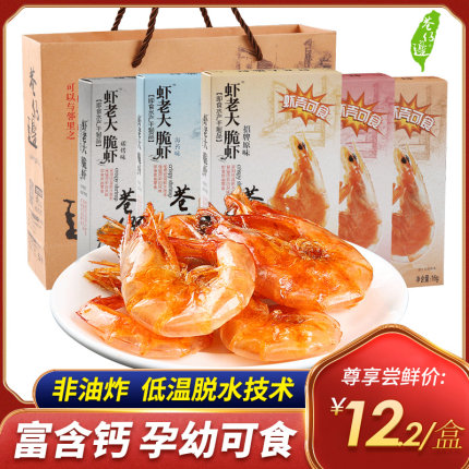 超大只脆虾,高钙,高蛋白!每个都是独立包装,安全卫生,酥酥的,头尾什么都能吃,不扎嘴,有嚼劲、有味道~孕期当作小零嘴还补~