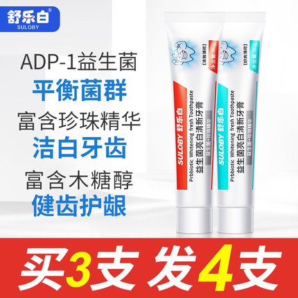【买3发4】益生菌牙膏,添加ADP-1益生菌,平衡菌群;富含珍珠精华木糖醇,洁白坚固牙齿,益生菌牙膏,好口腔新选择!