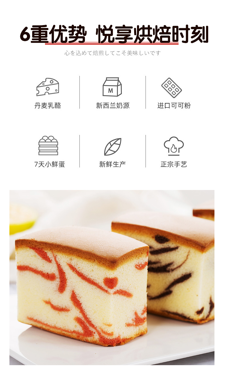 顶丰 长崎蛋糕巧克力云石纯鸡蛋糕整箱520g,不含防腐剂和色素,精选精制小麦粉、鸡蛋、新西兰奶粉和可可粉等,遵循日本传统工艺,如大理石的纹理,可可与牛奶交融的满足,挑逗你的味蕾。
