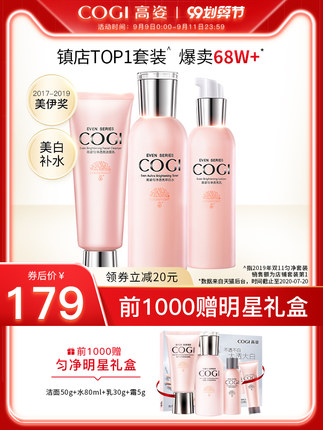 高姿旗舰店, 9-11日天猫 99划算节, ¥89元 划算价, -60元优惠券, =29元 到手价,选择明星礼盒套餐,包含:洁面乳50g、大白水80ml、透亮乳30g,透亮霜5g。