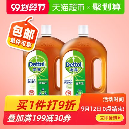 9-11日天猫 99划算节,¥189.8元 划算价,-28.47元 下单立减,-10元优惠券,=151.33元 到手,共1.8L*2瓶。可叠加满199-30元购物券。这款滴露 杀菌消毒液,主要有效成分是PCMX,可有效杀灭99.999%的大肠杆菌、金黄色葡萄球菌等有效细菌,含有清香松油,淡淡清香;可兑水用于伤口消毒,也可以用于地板消毒、衣物消毒、家居消毒等。