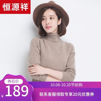 【恒源祥 秋冬季新款高领修身100%羊毛衫 多色169元包邮】