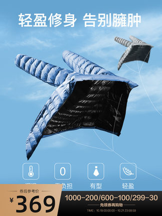 90白鸭绒填充,舒适保暖,4层防钻绒技术,不跑绒/不钻绒。目前天猫商城鸭鸭依恒专卖店售价¥209,下单立减50元,还可叠加¥80优惠券,双重优惠实付¥79包邮到手,多色可选