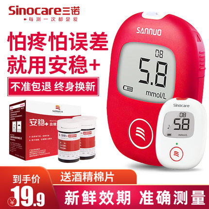 【三诺 安稳+型免调码血糖仪+血糖试纸100片 14.9元包邮】