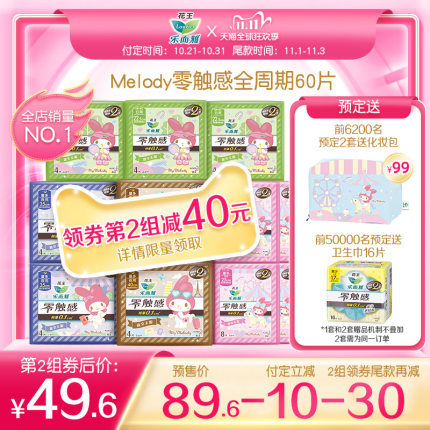 洁婷旗舰店, ¥69.9元 双11预售价, -5元 付定金立减, -5元优惠券, =59.9元 到手价(定金10+尾款49.9),限前5000件付定金加送10片,共到手1500片,超值好价。洁婷旗舰店22年经典款,历经8代升级,爆款棉柔日夜周期组合,无荧光剂,安全健康,亲肤绵柔表层,瞬吸防漏,经典日夜组合,周期更方便~