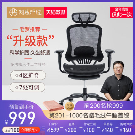 【网易严选 多功能人体工学转椅 999元21日0点抢 限尾款前30分钟】