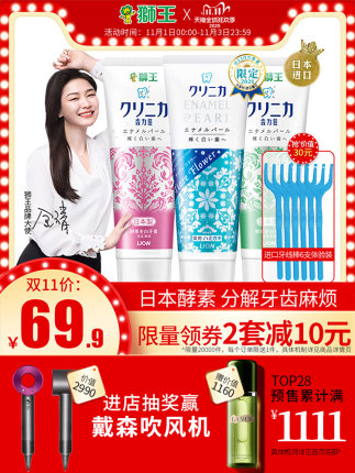 【日本原装进口 狮王 齿力佳酵素美白牙膏 130g*3支 59.9元抢先价】