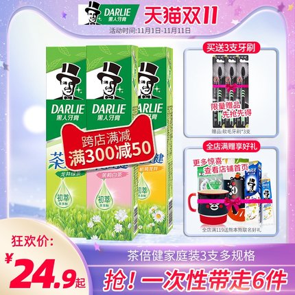 【黑人 茶倍健去黄去口臭超值3支家庭装 券后19.9元起包邮】