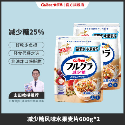 【日本 卡乐比 水果麦片 减少25%糖含量 600g*2袋 89元包邮】