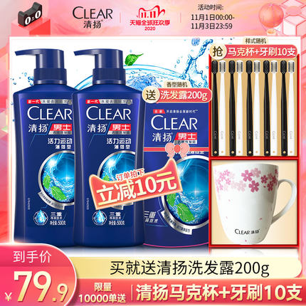 【清扬 男士活力运动洗发露 500ml*2瓶+补充装400g 64.9元抢先价】