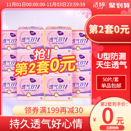 洁婷 日用棉柔亲肤透气卫生巾 100片,透气双U日用组合装,绵柔亲肤卫生巾,轻薄透气,三重持久,海量瞬吸,加长加大尾翼,防侧漏不反渗,每月都要用,一次屯个够 天猫超市领券拍下2件实付47.9元包邮,月销量3.5万+件。