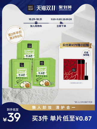 玛丽黛佳旗舰店预售价¥39,下单立减¥5,领取¥15优惠券,到手实付¥19包邮,湿巾水量足,温和不刺激,轻松便携卸妆,出门携带很方便,再也不用带瓶瓶罐罐的卸妆水和卸妆棉了。