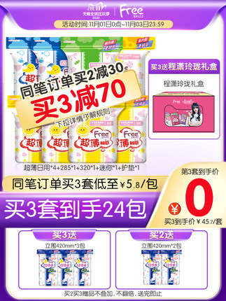 Free 日夜组合卫生巾 79片 ,超薄透气,天然柔护,360度防漏,经期干爽不粘腻,好用不止一点点! 天猫free旗舰店领券拍下39元包邮