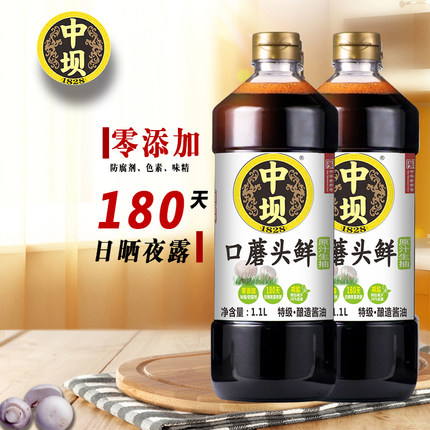 【中华老字号 清香园旗下 中坝 口蘑头鲜 原汁生抽酱油 1.1L*2瓶 25.8元抢先价】
