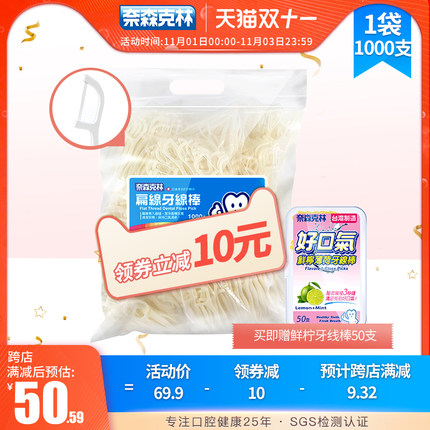 【前1小时第2件半价,满2件赠鲜柠牙线棒50支】奈森克林专注口腔健康,台湾进口扁牙线,安全环保材质清洁牙缝护理口腔,1000支家庭装全年365天,全套360度无死角呵护全家牙齿健康