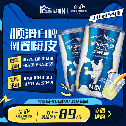 【限地区,哈尔滨啤酒 冰纯白啤330mL*24罐49元包邮】