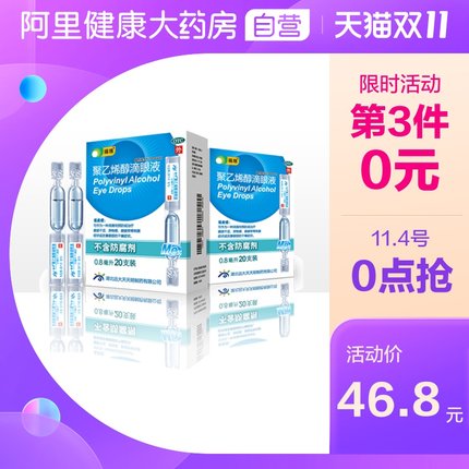 单支包装方便携带干净卫生,目前这款滴眼液在天猫商城阿里健康大药房聚购价¥46.8,第三件0元,同时可领取¥20优惠券,下单3件双重优惠实付¥73.51包邮,折合¥24.5元/件,会员还可95折,到手价更低