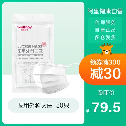 WELLDAY 维德 一次性医用外科口罩 50只 19.55元包邮