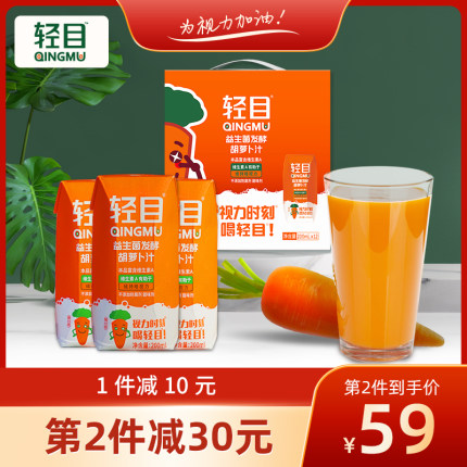 一瓶等于两根胡萝卜,含大量胡萝卜素β,添加澳洲进口益生菌,24小时低温发酵易吸收,保护眼睛的同时还可以调节肠道。目前天猫商城轻目旗舰店200ml*4瓶售价¥29.9,可使用¥20优惠券,实付¥9.9包邮。